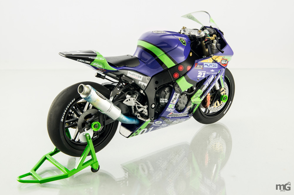 Fujimi ni ravno znan kot izdelovalec maket motociklov, vendar skuša to spremeniti s serijo maket JSBK (Japanesse superbike). Maketa je v primerjavi s Tamiyino manj detajlirana in ima nekatere čudne rešitve (pritrditev oklepa, rezrvoar in sedež v enem delu, ...), kar malce pokvari užitek ob izdelavi le te. Prileganje delov je dobro in ne povzroča težav. To pa ne velja za nalepke, katere so zelo debele in v nekaterih primerih velike, tako je naprimer celoten zadnji del motorja ena nalepka, nekaj težav povzočajo tudi stanske zelene nalepke. Tako sem moral prvič uporabiti mehčalec za nalepke, kateri je od sedaj naprej obvezna stvar pri izdelavi maket. Maketa je narejena skoraj celoti OOB, dodanih je nekaj cevk, žičk, BMF folije in karbonskih decalov.
